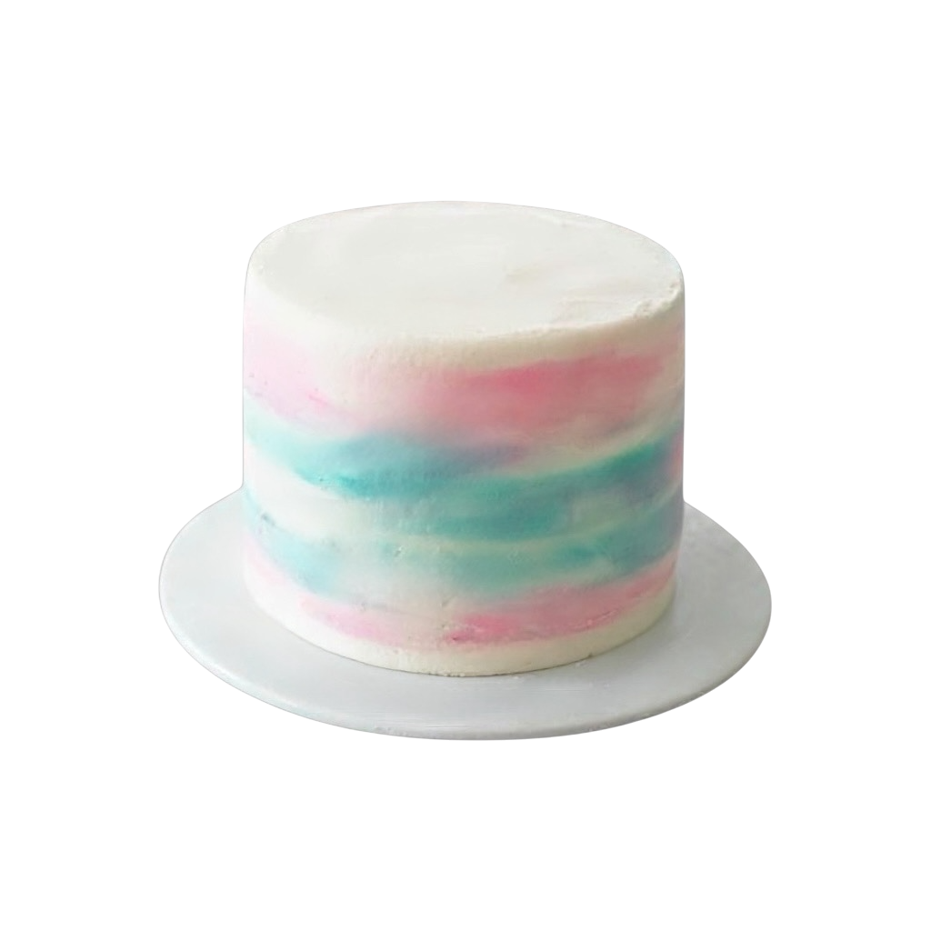 A soft, elegant ombré cake blending shades of pink, blue, and white—perfect for a sweet and subtle gender reveal. This cake features vanilla buttercream with a seamless color fade and a clean, modern finish.