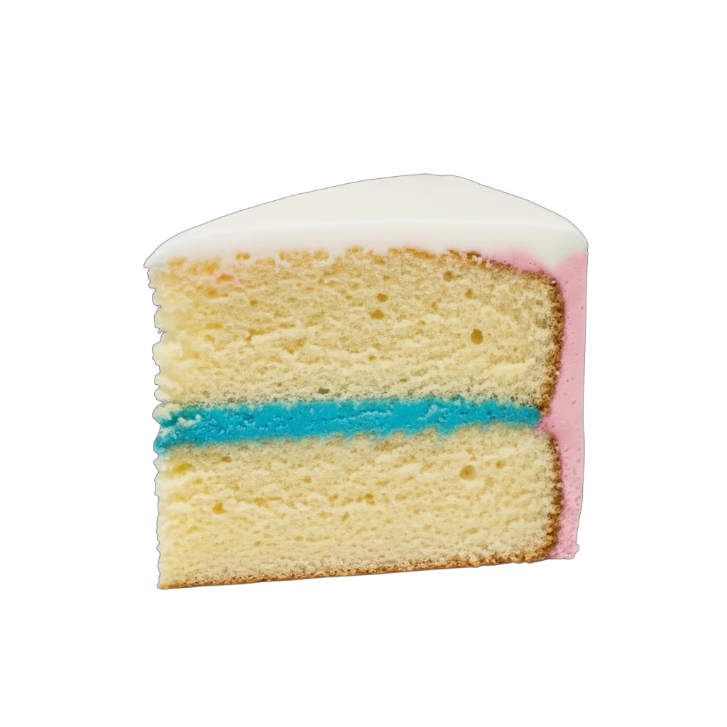 The inside holds the surprise, revealed when sliced with either pink or blue buttercream filling. Ideal for gender reveal celebrations, baby showers, or an intimate family surprise.