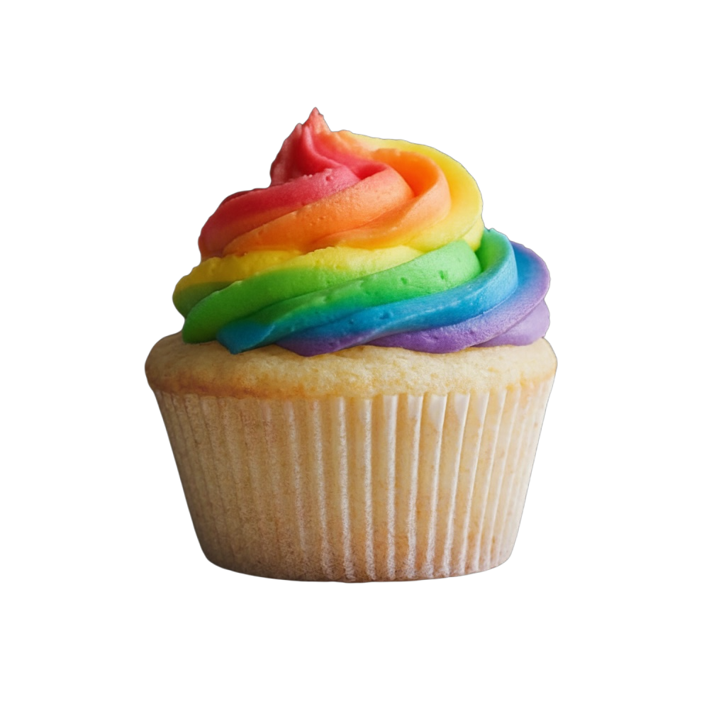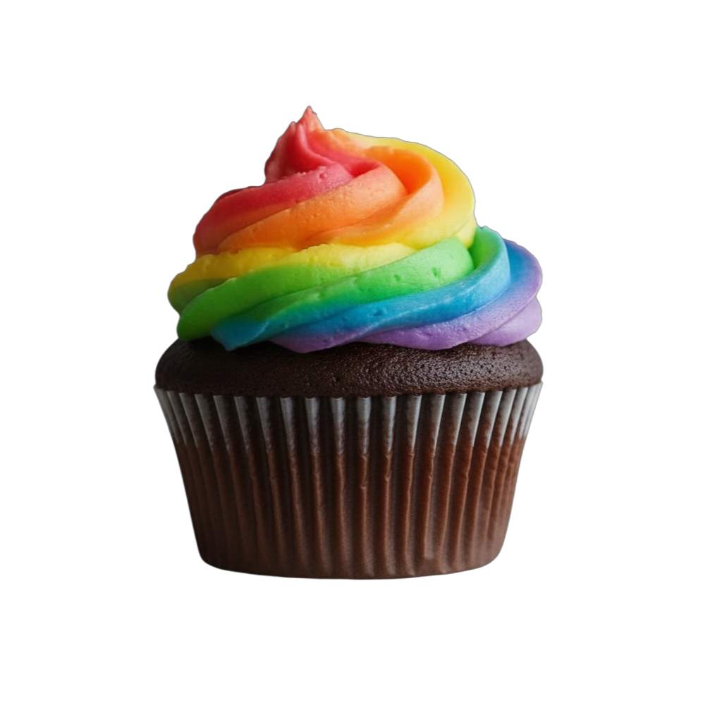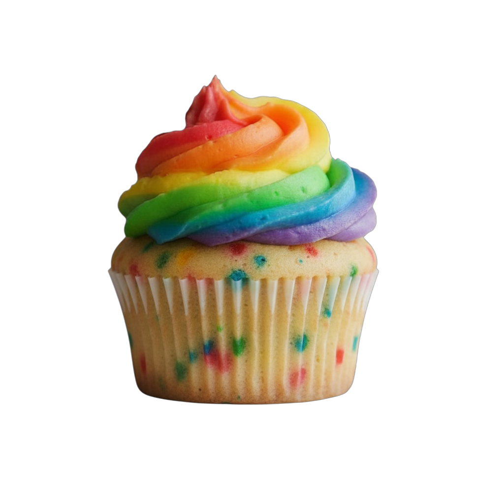 Your choice of vanilla, chocolate, or confetti cupcakes decorated with rainbow colored vanilla buttercream swirls